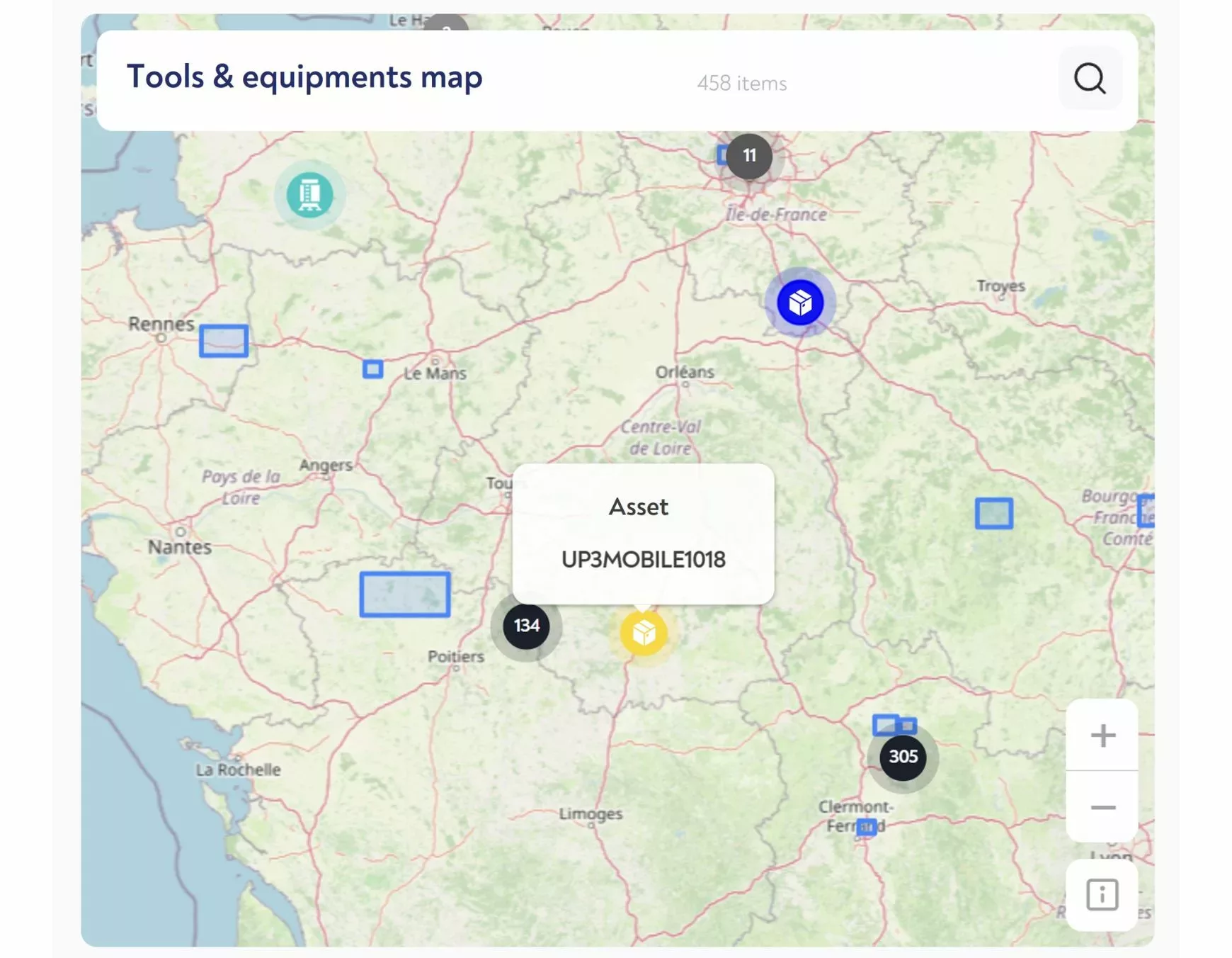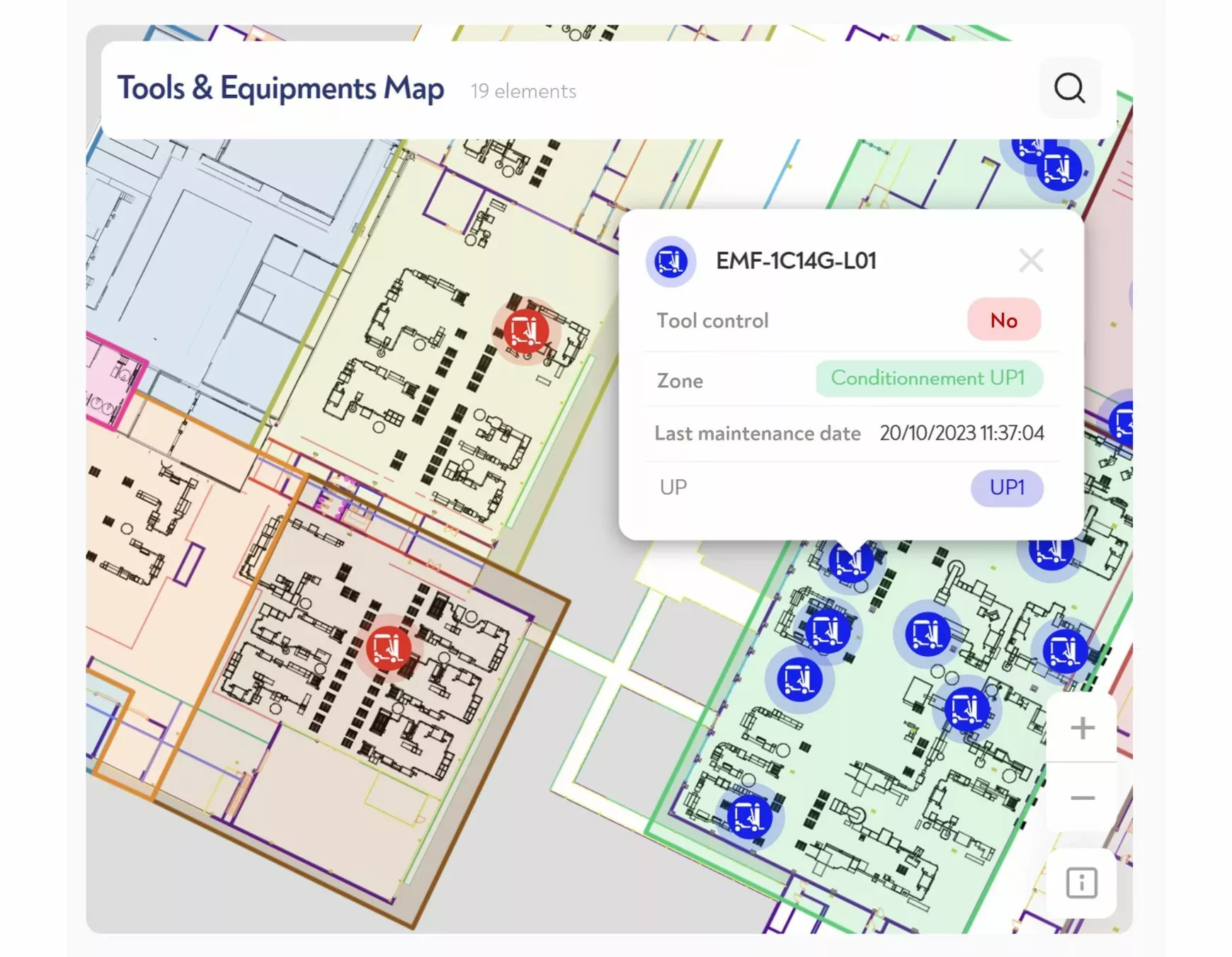 Use it to geolocate and visualize your WIP and assets inside and/or outside the plant on a dynamic map, in real time.