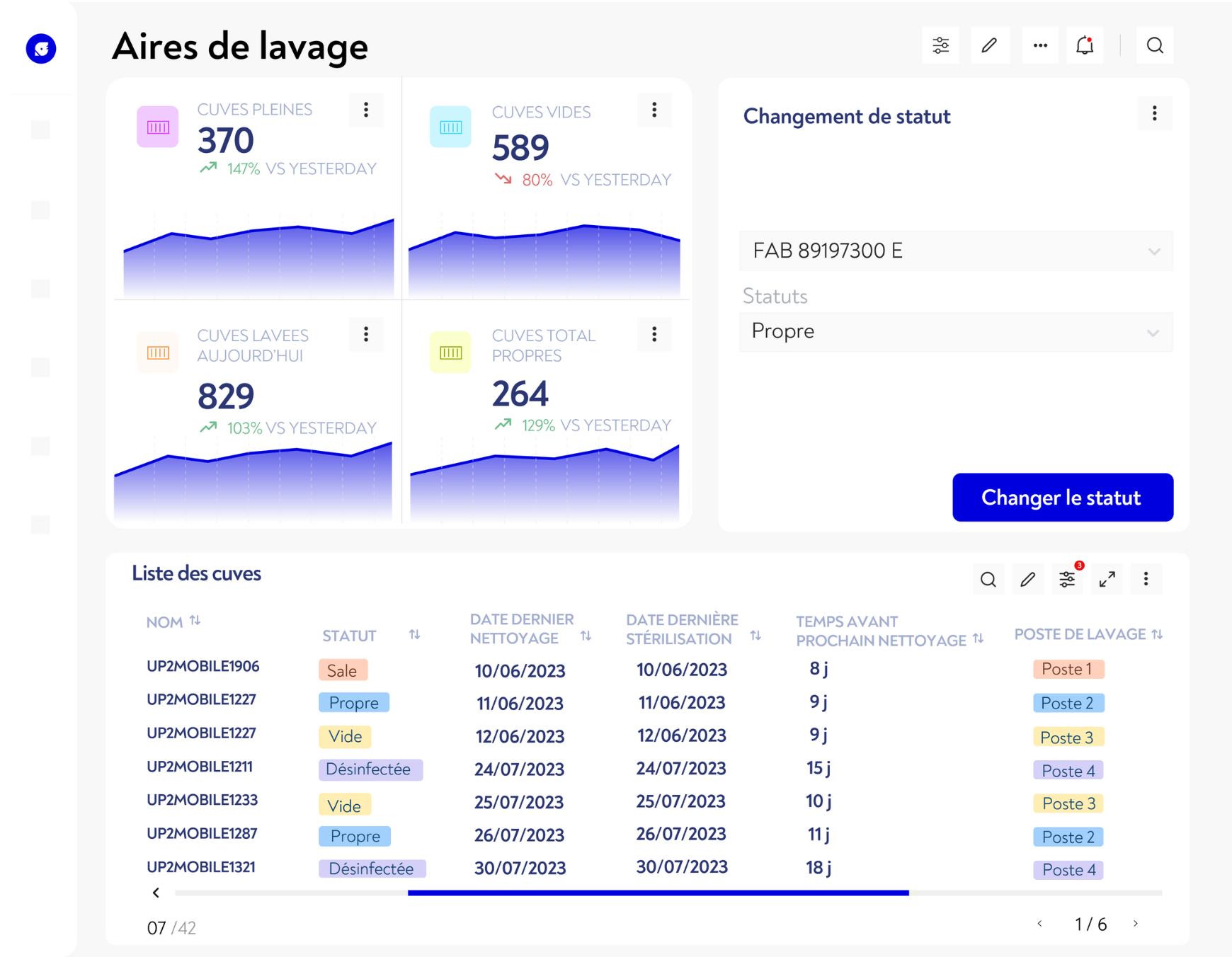 You benefit from a real-time view of your tank fleet, their distribution by status (dirty, clean, disinfected, empty, full…) and a map of the plant with tanks available or not.