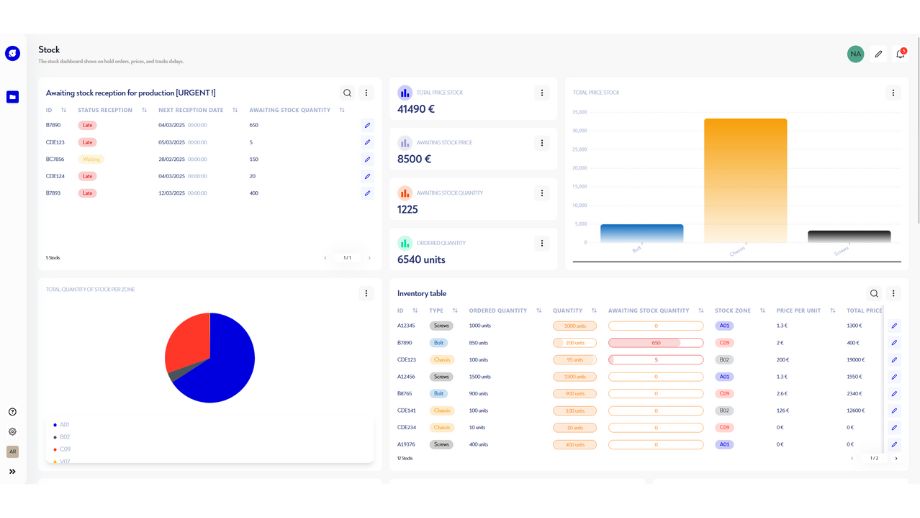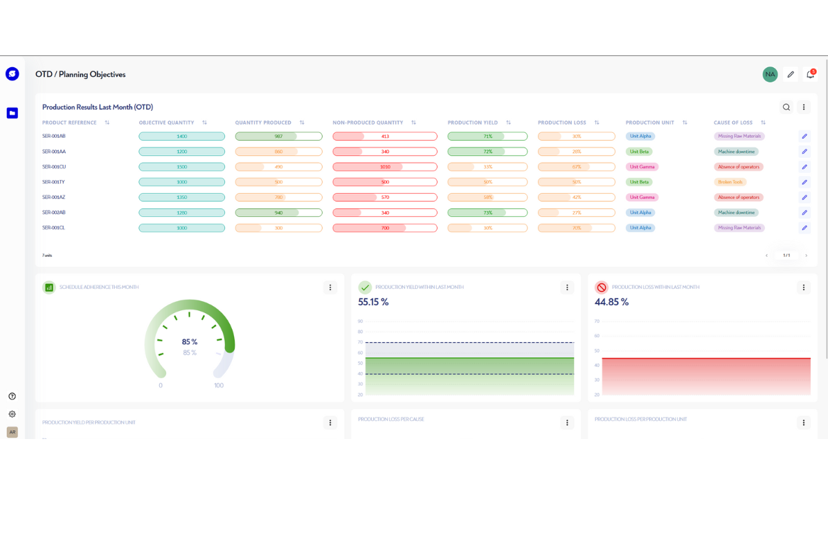 Grâce à nos widgets (tableaux de bord, indicateurs de performance…) entièrement configurables selon vos besoins, vous pouvez déterminer en quelques clics si la production est réalisable dans un contexte donné.