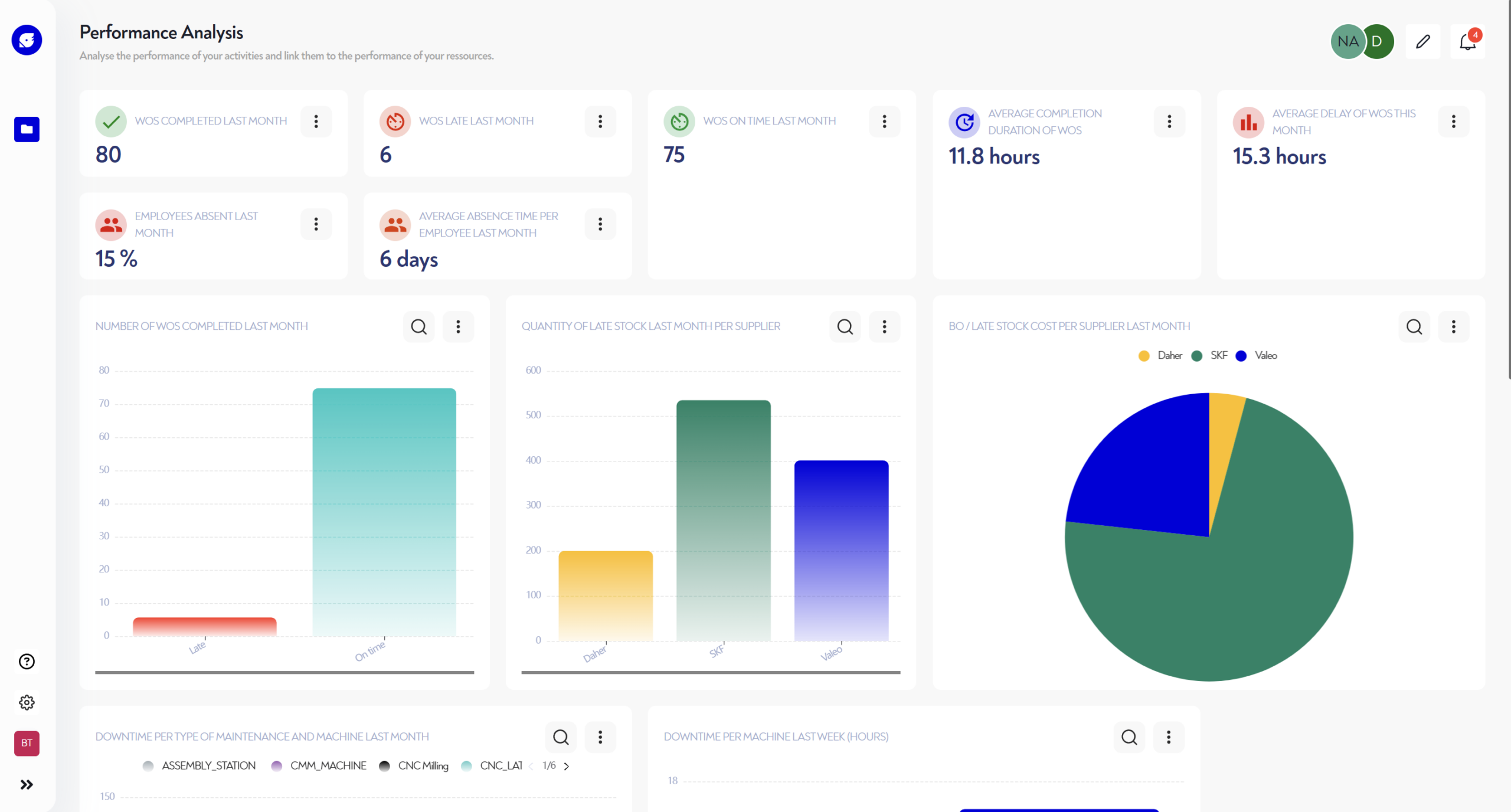 Robin identifie les dérives en temps réel et les modélise pour comprendre ce qui impacte réellement votre production et proposer un meilleur ordonnancement : détection des retards récurrents, analyse des facteurs d’aléa : matières, compétences, machines, WIP, segmentation par famille de produits, postes, équipes.