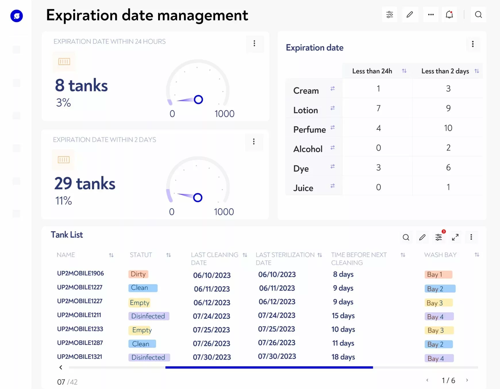 Wasting raw material has many consequences: financial losses, waste disposal processes, productivity drop due to low value added tasks repetition… With ROBIN, you’re instantanly alerted before a product runs out in your storage, thanks to your predefined alerts and dashboards. You can check at a glance the volume of product available and the hygiene status of each tank, so you can prioritize which tanks to use and which to wash, to optimize your production flows.
